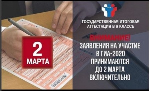 15.02.2020Рособрнадзор продлил сроки подачи заявлений на участие в Государственной итоговой аттестации 2020 года для выпускников 9 классов (ГИА-9) до 2 марта. «Так как в 2020 году 1 марта – выходной день, днем окончания приема заявлений будет являться следующий за ним рабочий день – 2 марта. Соответствующее разъяснительное письмо мы направили в регионы, чтобы региональные министерства образования проинформировали о сроках окончания приема заявлений участников экзаменов», – сообщил заместитель руководителя Рособрнадзора Анзор Музаев.Для участия в ГИА-9 выпускник должен написать в своей школе заявление, в котором указываются выбранные для сдачи учебные предметы. Для получения аттестата об основном общем образовании выпускники девятых классов должны сдать два обязательных предмета (русский язык и математику) и два предмета по выбору.