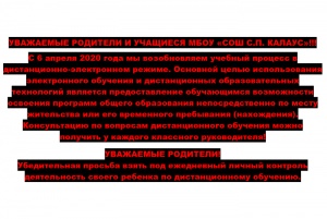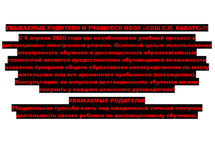 УВАЖАЕМЫЕ РОДИТЕЛИ И УЧАЩИЕСЯ МБОУ «СОШ С.П. КАЛАУС»!!!