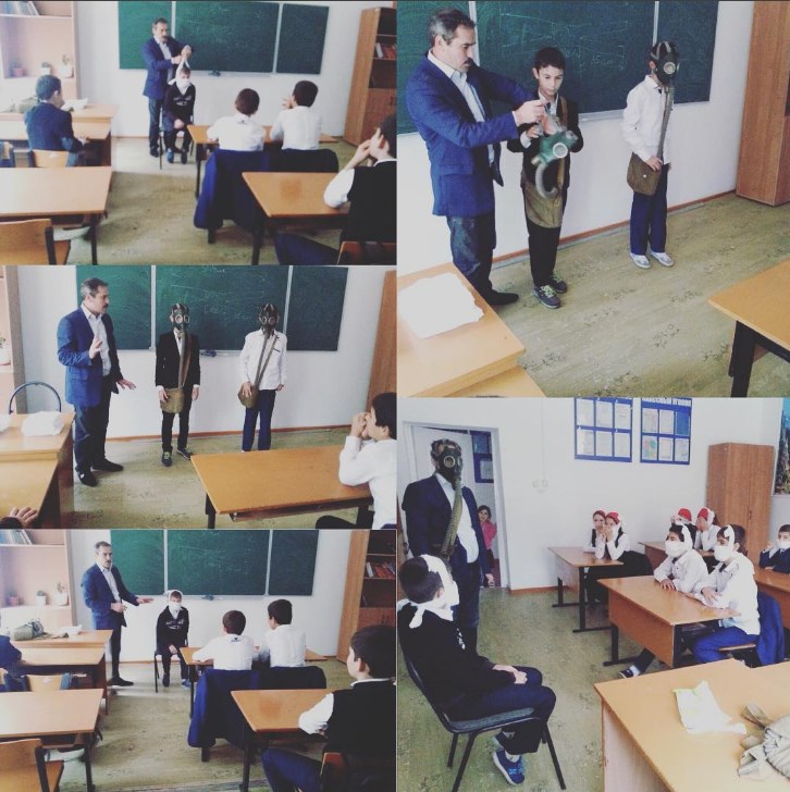 Руководитель ОБЖ Мерзуев Адам Алимович провел урок на тему: "Безопасность жизнедеятельности", с использованием ватно - марлевых повязок, с учащимися 8 класса, приуроченное "Месячнику гражданской обороны"
