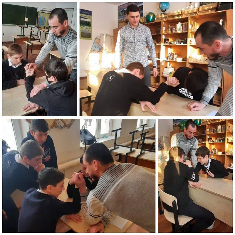 Учитель физической культуре Мутакаев Ш.Ш. провел конкурс: «Армрестлинг». Здоровый дух, как известно, - в здоровом теле. Поэтому занятия спортом - неотъемлемая часть повседневной жизни солдата.