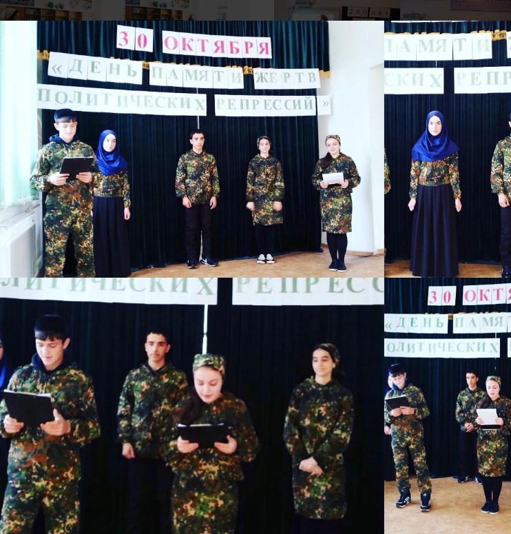 Учитель истории Дункаева Зарима Вахаевна провела мероприятие приуроченное "Дню жертв политических репрессий" - История России полна подлинного величия. Мы гордимся боевой и трудовой славой, научными и культурными достижениями наших предков, которые отдали России свои силы, таланты, мужество, а многие оказались принесены в жертву ее истории.Одна из самых трагических страниц летописи нашей страны– политические репрессии.30 октября отмечается как день памяти жертв политических репрессий. Эта памятная дата установлена не государством, а самими узниками политических лагерей. Решение Верховного Совета России от 18.10.1991 г. внесшее его в государственный календарь только придало ему официальный характер.