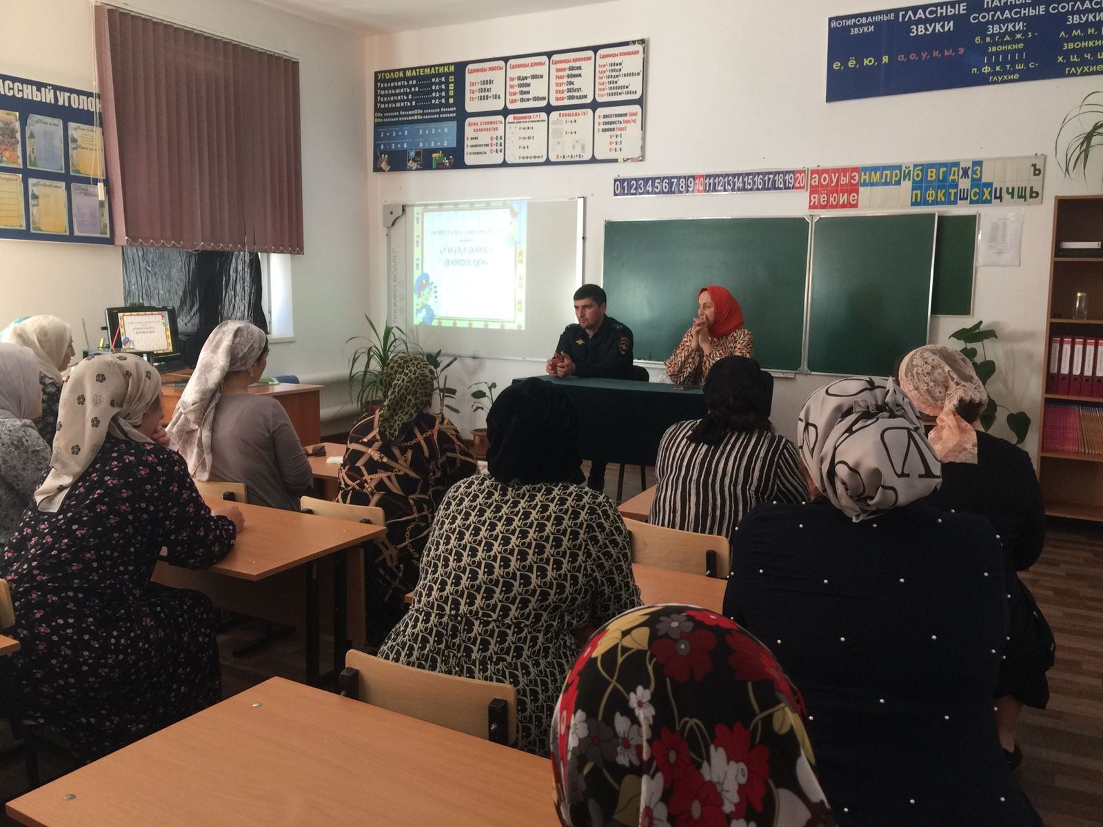 В МБОУ "СОШ с п.Калаус" с родителями 1-11кл. проведены профилактические беседы с участием инспектора по ПБДД ОГИБДД ОМВД России по Надтеречному району, капитана полиции Элижбиева С.С. Инспектор рассказал родителям об особенностях поведения на дороге и в транспорте, переходе проезжей части в установленных местах, предупредил о важности соблюдения правил дорожной безопасности в дворовых территориях, где игровые площадки находятся в непосредственной близости от движения транспорта.