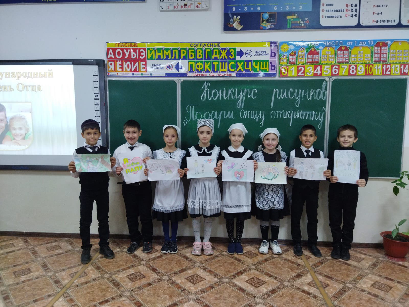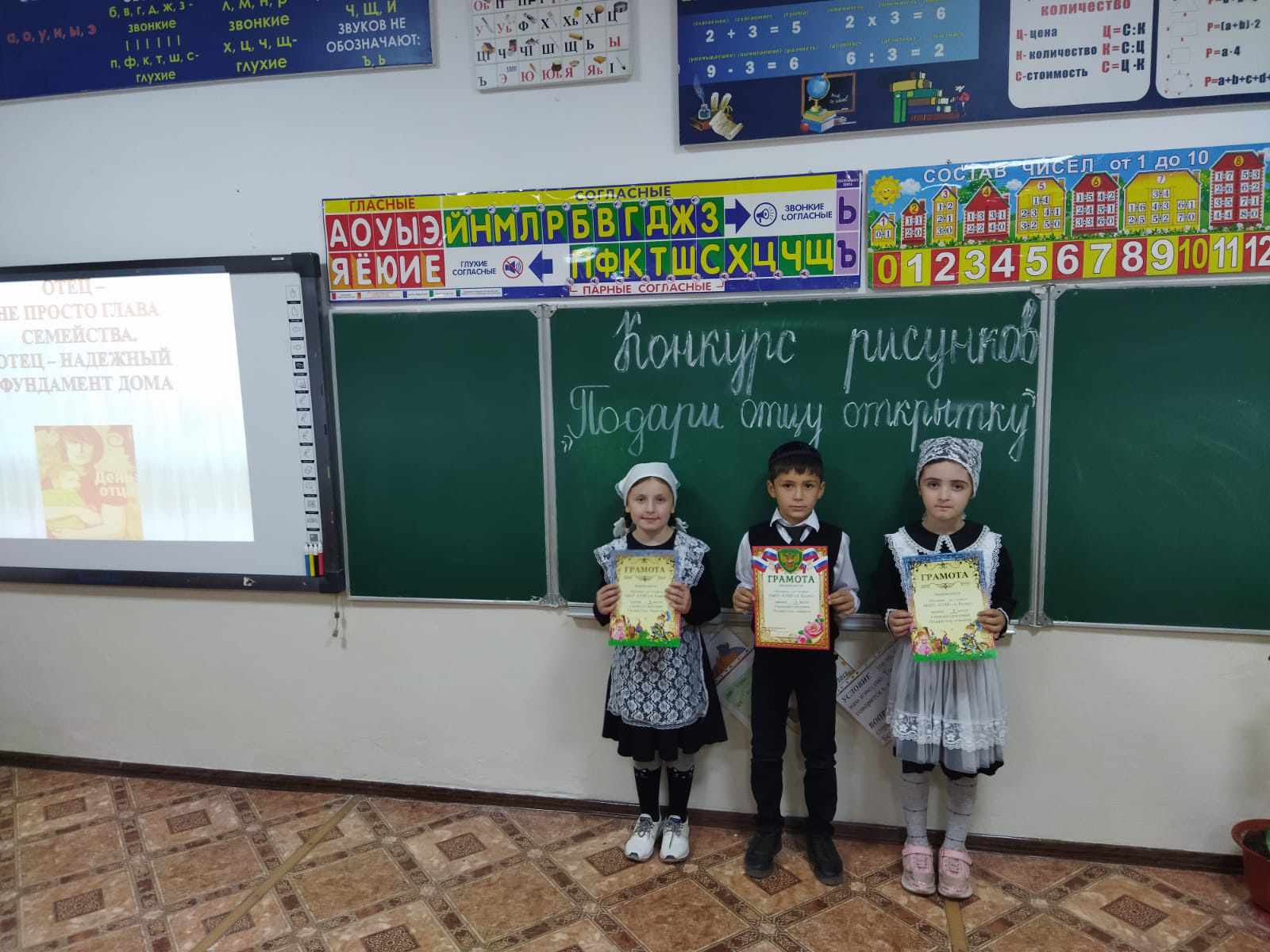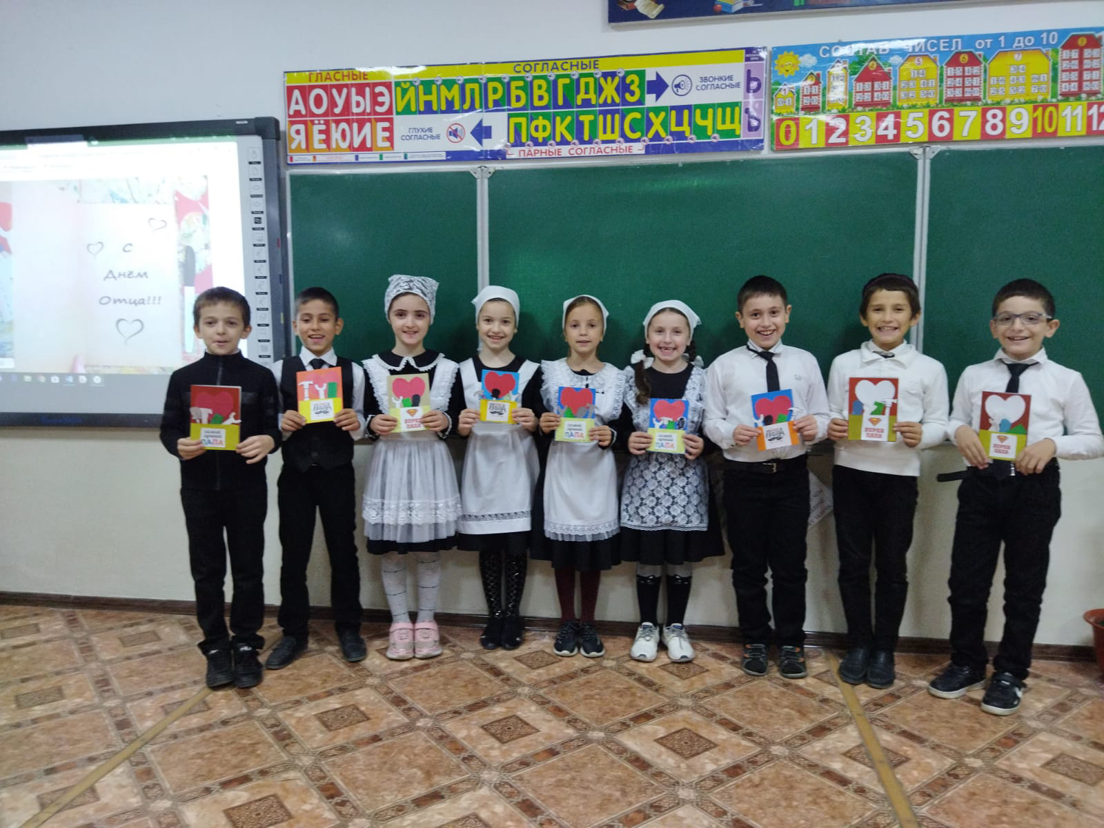 Во 2 классе МБОУ "СОШ с п Калаус" прошла акция "Подари отцу открытку" приуроченная празднику "День отца"
