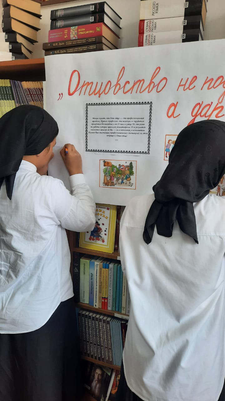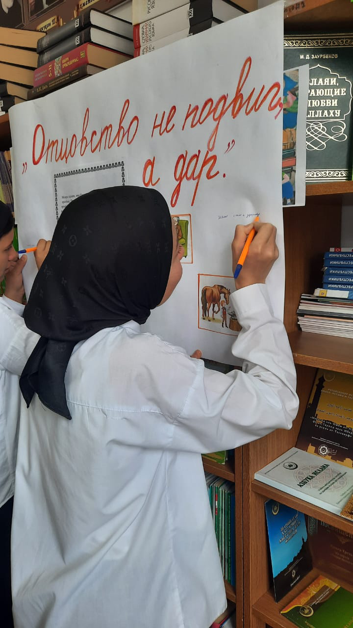 12 октября библиотекарь школы Идрисова З.Х. провела познавательный час "Отцовство не подвиг,а дар"