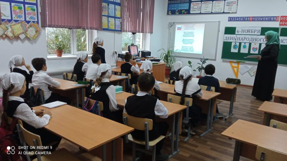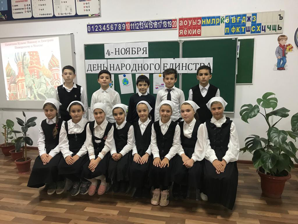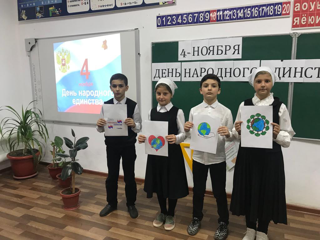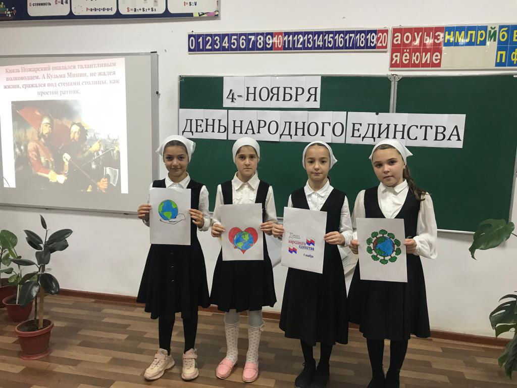 В 3-м классе МБОУ «СОШ с.п.Калаус» прошёл классный час, приуроченный Дню народного единства. Цель:формировать чувство гражданственности и патриотизма; расширять кругозор учащихся; воспитывать интерес к изучению истории своей страны, чувство гордости и уважения к защитникам государства.