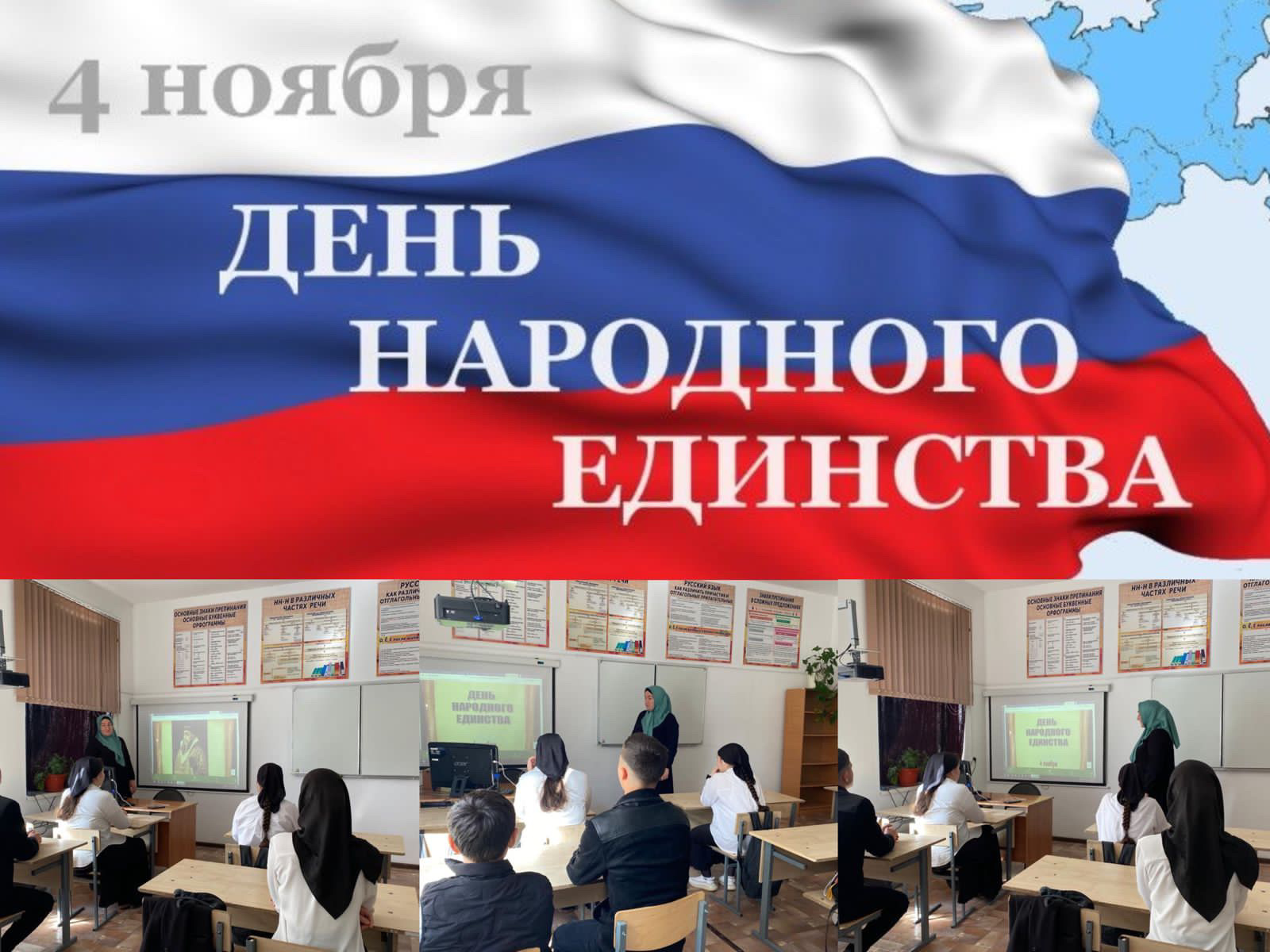 29 октября 2022 года классный руководитель 10 класса Джанаева Марха Алаудиновна провёла классный час на тему: «День народного единства» с целью познакомить учащихся с историей установления праздника, историческими событиями и героями, связанными с этим праздником.