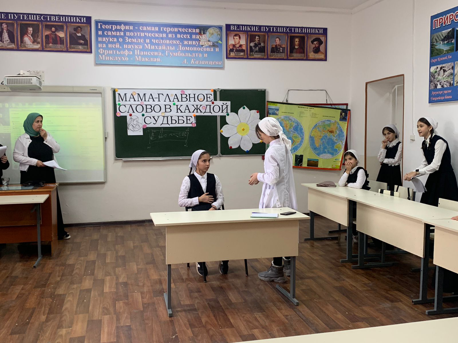 26.11.2022года классный руководитель5б класса Дункаева З.В. провела мероприятие, посвященное Дню Матери: «Мама – главное слово в каждой судьбе». Цель мероприятия формирование и воспитание у учащихся духовно-нравственных, эстетических ценностей к семейным традициям, бережного отношения к женщине.