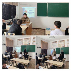 Классный руководитель 7 класса Расуева З.Д. провела урок посвященный,участникам специальной военной операции,проявившим отвагу,мужество и героизм. Цель: формирование патриотизма у современной молодѐжи, воспитание отважных, решительных граждан своей Родины с активной жизненной позицией. Задачи: 1.Познакомить учащихся с героической историей российского народа на примере подвигов, совершѐнных воинами в разные времена. 2. Рассказать о героях-земляках, участниках СВО. 3. Формировать у учащихся представления о героизме, долге, отваге, чувство восхищения и гордости подвигами, совершенными воинами.