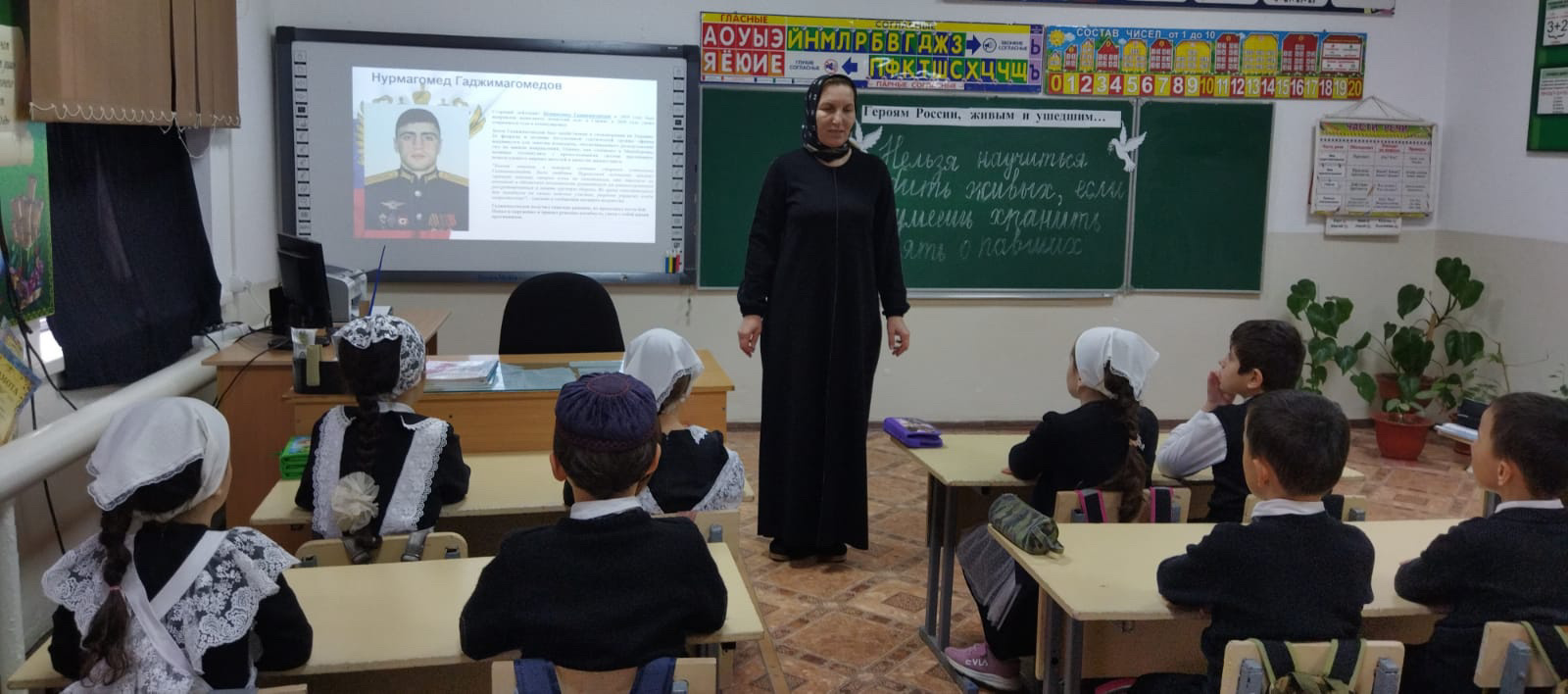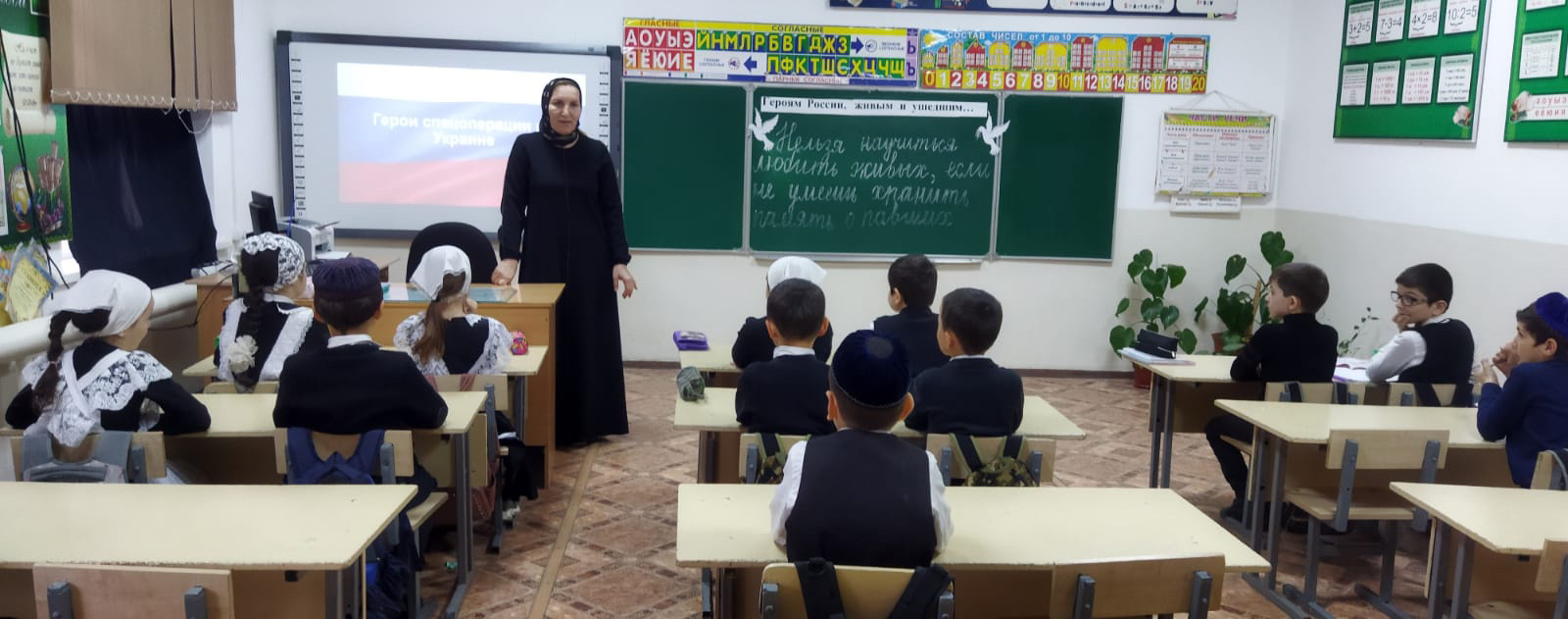 Во 2 классе "МБОУ СОШ с.п. Калаус" классный руководитель 2класса провела классный час, посвященный участникам специальной военной операции на тему: "Героям России, живым и ушедшим..."