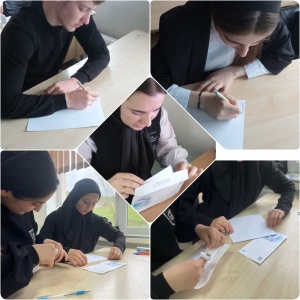 МБОУ «СОШ с.п. Калаус» 13.04.2023г. активисты ЕДЮО «Юные Кадыровцы» написали письма с теплыми словами поддержки бойцам нашей армии, солдатам и офицерам, которые сегодня выполняют миссию мира, освобождая территорию юго-восточной Украины от фашиствующих националистов в знак поддержки военнослужащих России, участвующих в военной операции на территории Украины.
