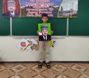 Классный руководитель 3 класса Дункаева Я.М. в МБОУ"СОШ с.п. Калаус" провела урок Мужества посвященное Первому Президенту Чеченской Республики Герою России А-Х.Кадырову