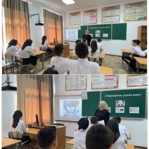 Классный рук-ль Расуева З.Д. провела в 8 классе классный час «Терроризм-угроза миру». Цели: объяснить сущности терроризма, его типы и цели; совершенствование у учеников знаний о терроризме; основ безопасности в ЧС; формирование общественного сознания и гражданской позиции подрастающего поколения.