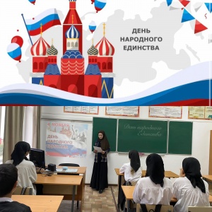 27.10.2023г. Классный руководитель 8 класса Мутакаева И.Р провела классный час на тему «День народного единства»
