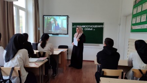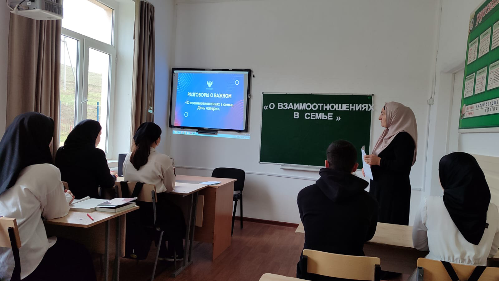 20 ноября классный руководитель 11 класса Джанаева М.А. провела «Разговоры о важном» на тему «О взаимоотношениях в семье». На уроке обучающиеся делились своими представлениями о том, что означает «семья», рассуждали о значении семьи в жизни человека, говорили об основах семьи – ответственности друг за друга, чувстве взаимопомощи, уважении, любви, взаимопонимании. Смотрели видеообращение федеральных спикеров Екатерины и Александра Стриженовых, семейный стаж которых насчитывает более 35 лет и семьи Сергея Жукова, узнали о том, что такое крепкая семья и как ее сохранить. Говорили о традиционных семейных ценностях, рассказывали о семейных традициях, вспоминали пословицы и поговорки о семье. В конце занятия обсуждали идеи для поздравления наших мам с Днем матери, который отмечается 26 ноября.