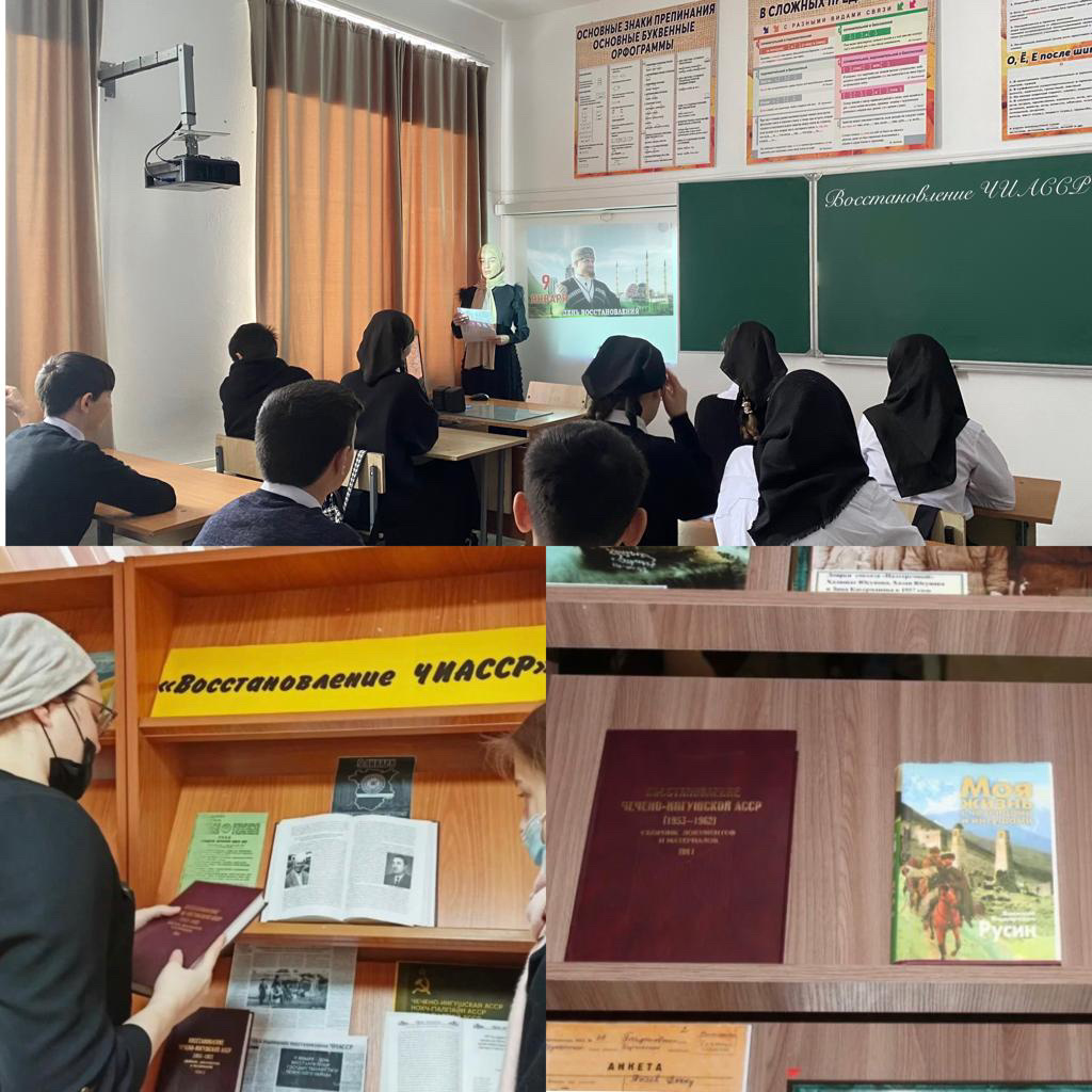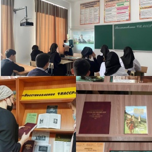Классный руководитель 8 класса Мутакаева И.Р. провела классный час «Всстановление ЧИАСС» Цель: 1.Ознакомить с историей чеченского народа. 2.Привить любовь к Родине.
