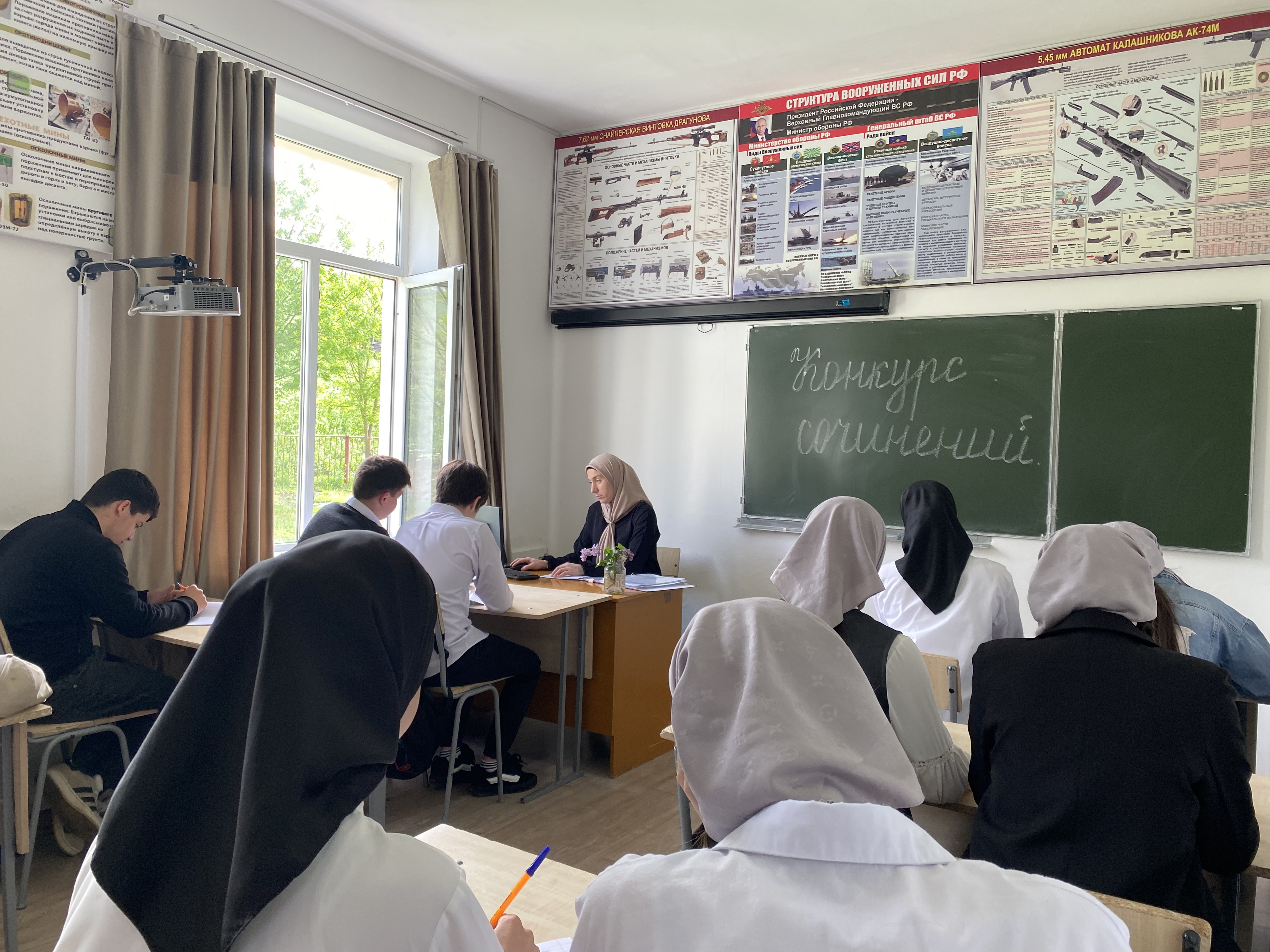 13.02.2024г в МБОУ «СОШ с.п. Калаус» провели Республиканский конкурс сочинении для старшеклассников на тему: «Вклад моей семьи в дело возрождения республики»