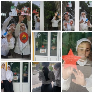«Окна Победы»-это удивительная акция, которая сближает людей в великий для нас день. Ее целью является создание атмосферы одного из самых важных праздников в России, передача молодому поколению традиций, выражение благодарности героям Великой Отечественной войны, почитание памяти об ушедших ветеранах. 03.05.2024г. в МБОУ "СОШ с.п. "Калаус" педагог – организатор Балоева З.И. совместно с ЕДЮО «Юные Кадыровцы» украсили окна школы праздничными рисунками, журавлями, тянущимися к небу, салютами, цветами, звездочками.