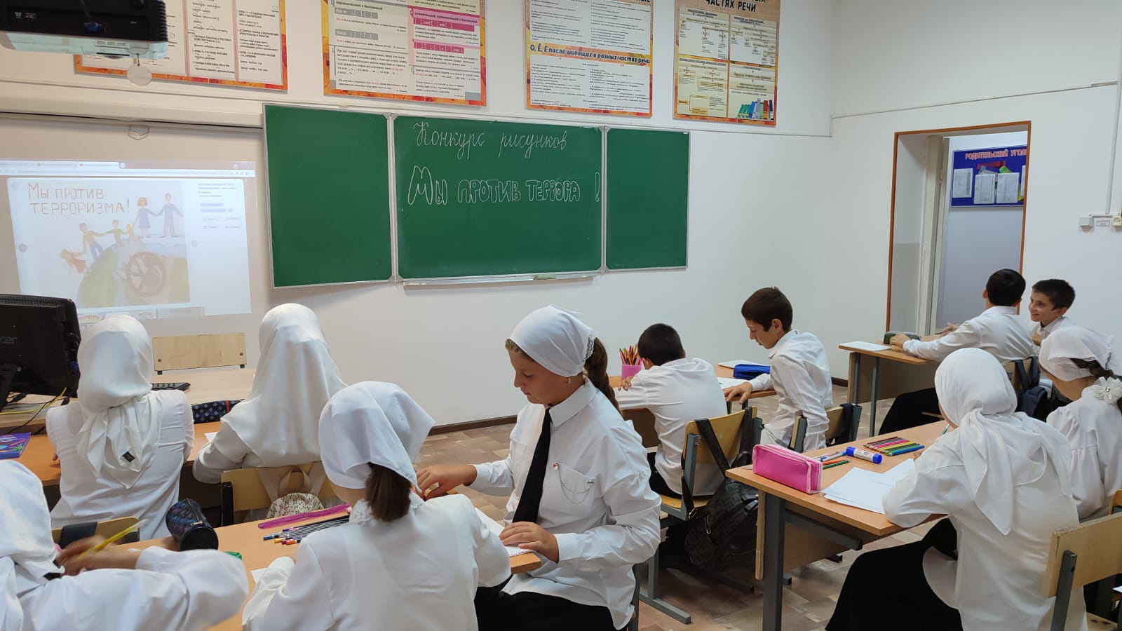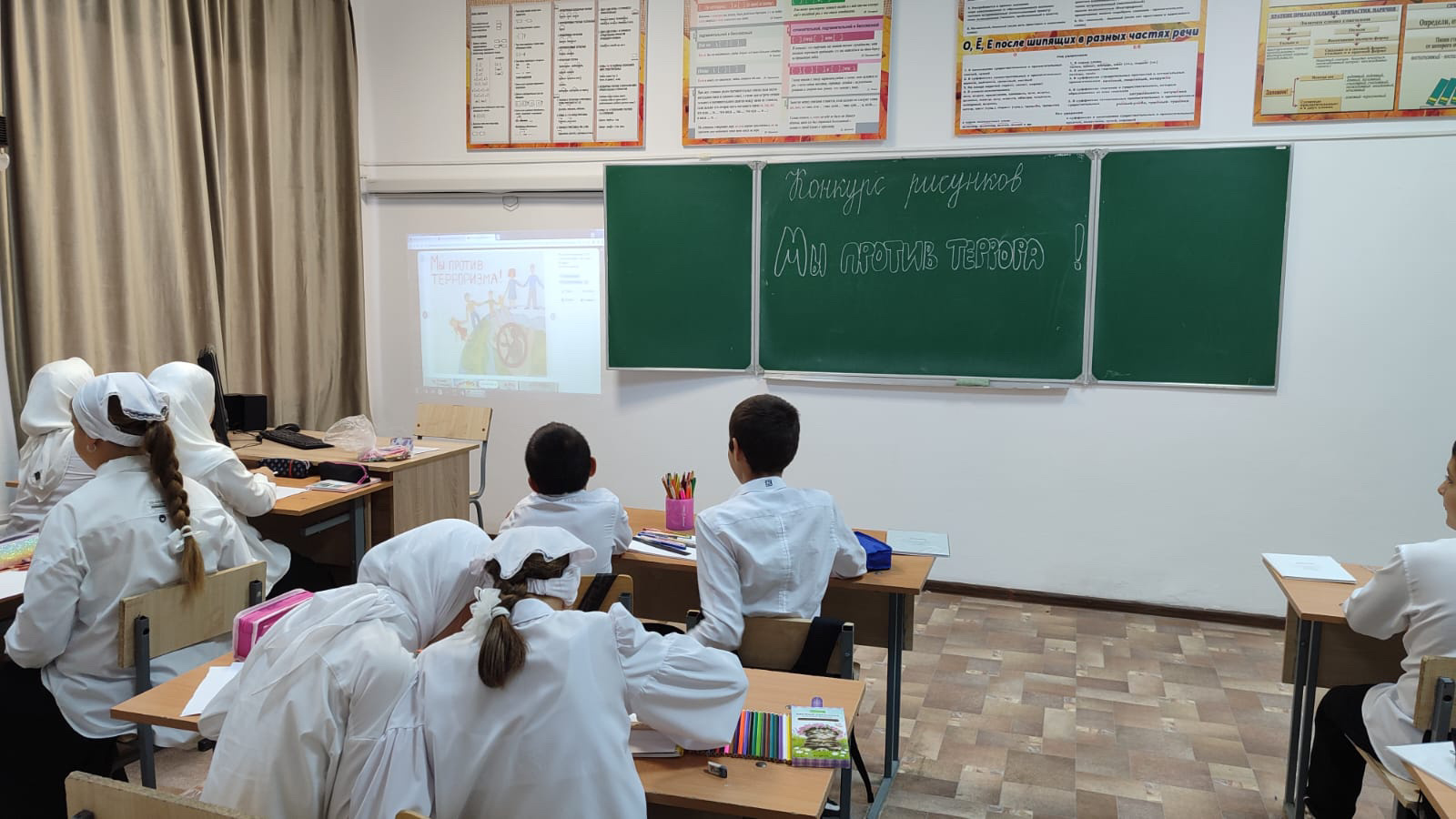 В 5 классе прошел конкурс рисунков на тему:«Мы против террора».