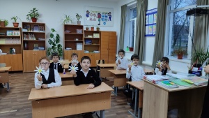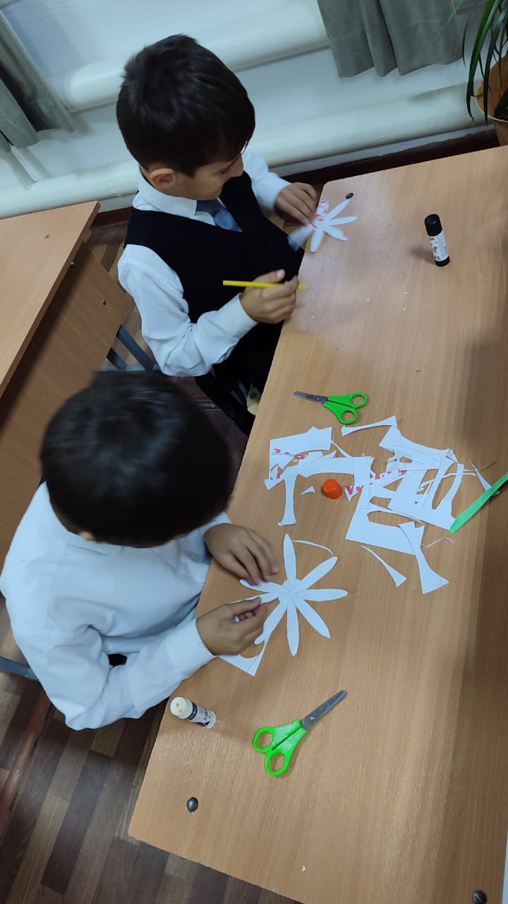 Обучающиеся МБОУ "СОШ с.п.Калаус" вырезали из бумаги ромашки и на каждом листке писали пожелания добра и мира.