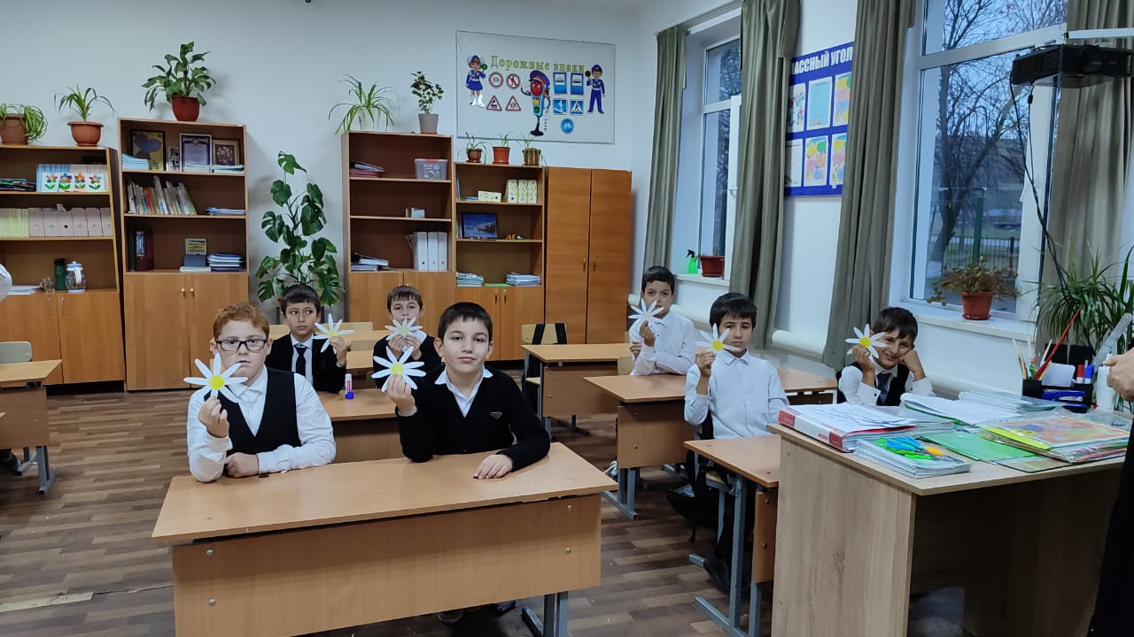 В рамках федерального проекта "Социальная активность" национального проекта "Образование" обучающиеся МБОУ "СОШ с.п.Калаус"провели акцию "Ромашка безопасности",приуроченную Всемирному Дню доброты.