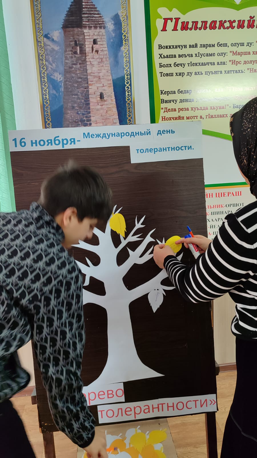 16 ноября классный руководитель 5 класса Джанаева Марха Алаудиновна провела акцию на тему "Дерево толерантности".