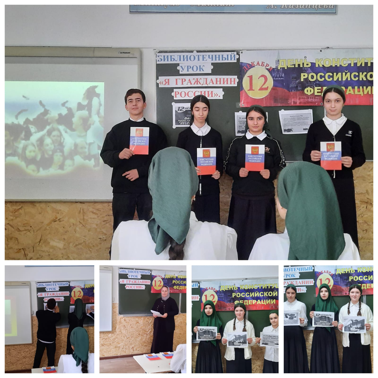 В рамках Дня Конституции России 12 декабря 2024 г.библиотекарь Идрисова З.Х. провела библиотечный урок в 8 классе на тему: