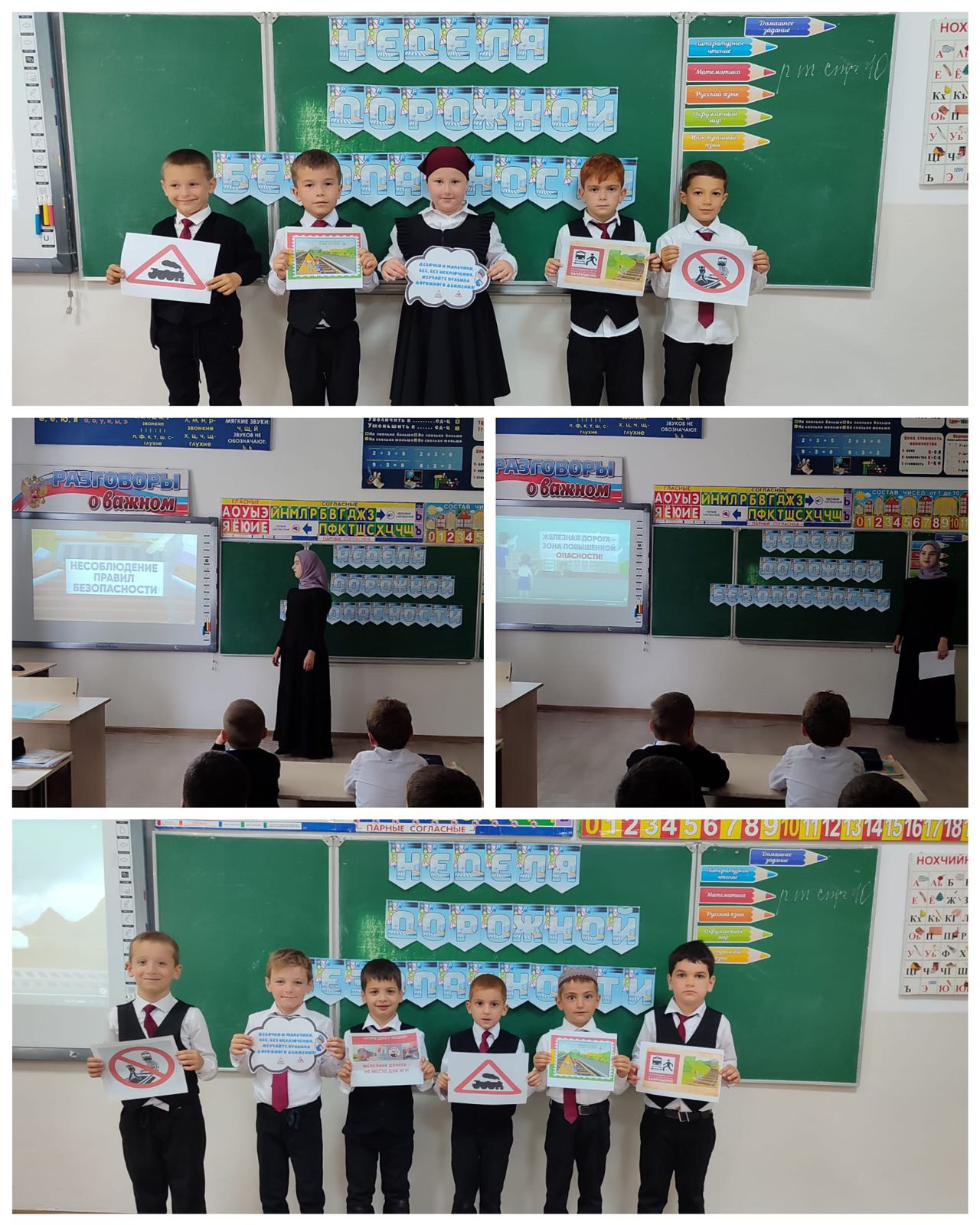 В МБОУ „СОШ с.п.Калаус” классный руководитель 1-го класса Солтаева Малика Руслановна провела беседу «Уступи дорогу поездам!»