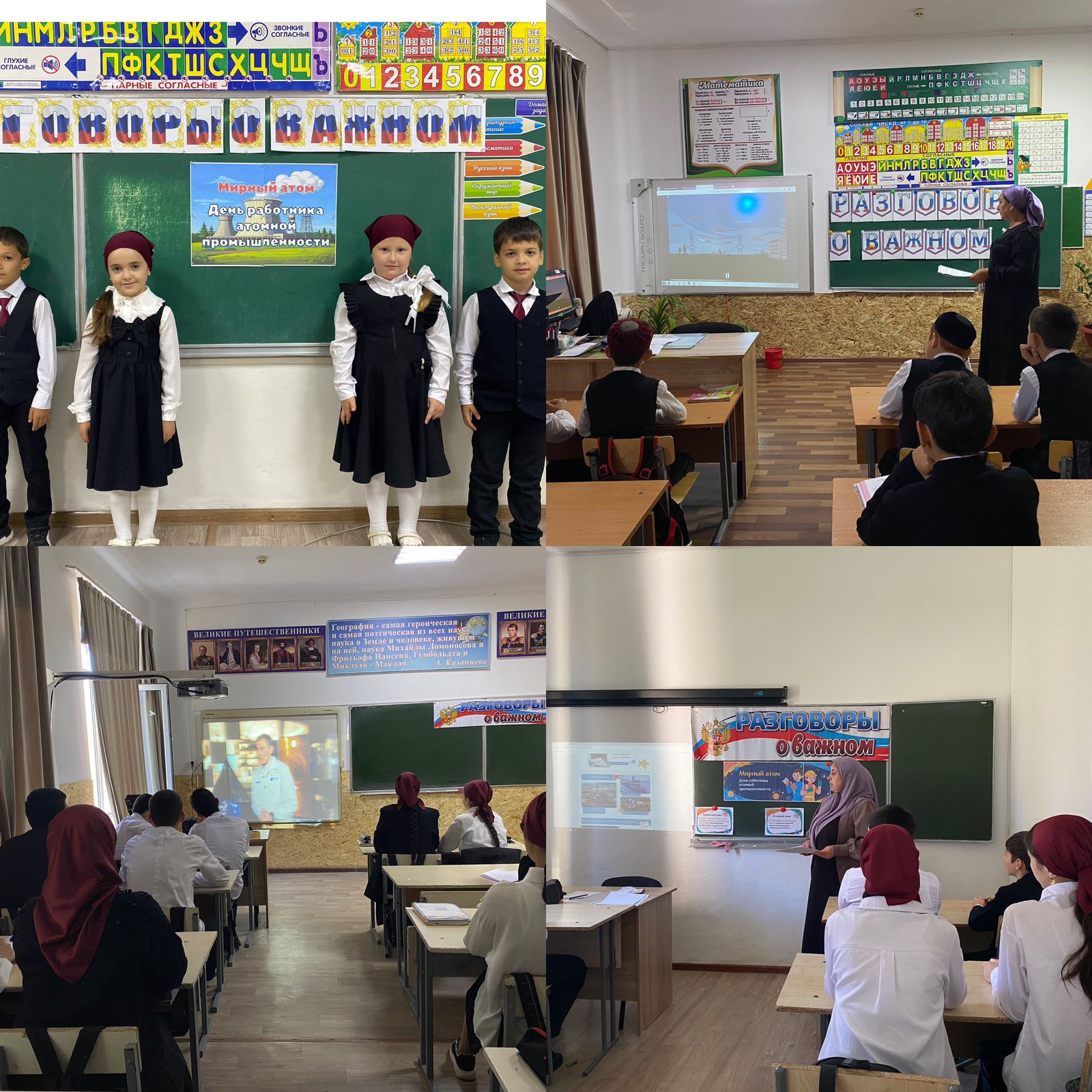 После завершения линейки дети разошлись по классам, где проходили внеурочные занятия Разговоры о важном на тему: «Мирный атом. День работника атомной промышленности».